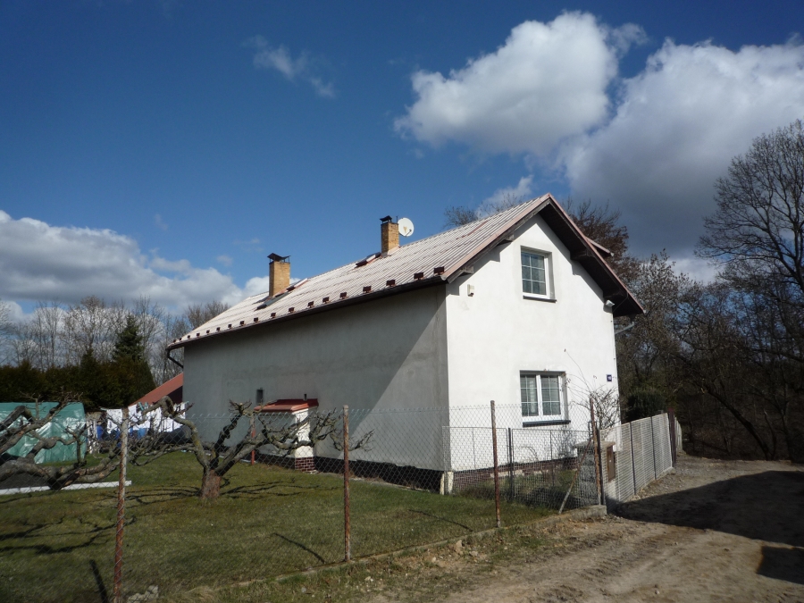 Hlavní stavba rodinného domu o zastavěné ploše 103 m2 je v základu původní venkovský dům, který léty prošel procesem dostaveb a přestaveb. V aktuální podobě, v jaké dům sloužil jako trvalé obydlí mladé rodiny, poskytuje ve dvou podlažích 147 m2 obytné plochy v dispozici 4+1 (viz plánky podlaží ve fotogalerii). Rodinný dům je ve stavu, kdy může být prakticky okamžitě obýván. Pouze je nutná náhrada za vysloužilý stávající plynový kotel. V obci aktuálně probíhá výstavba splaškové kanalizace (dokončení v 9/2026) a je uzavřena smluvní dokumentace vlastníkem nemovitosti k napojení. Odbočka kanalizace k domu je již zbudována a ukončena na pozemku. Příjezdová cesta bude ještě upravena s dokončením prací. Dům je napojený na obecní vodovod a na plynovou přípojku. Obvodové zdivo v 1 NP je 45 cm, v 2 NP jsou štítové zdi 45 cm, zbytek 30 cm. Zdivo není opatřené tepelnou izolací. Izolace stropu a šikmin 2 NP je 10 cm Orsil. Výška stropu 1 NP 270 cm, 2 NP 235 cm. Krytina střechy je plechová (alukryt šablony). Původní kamenný sklípek pod domem o výměře 7,5 m2.