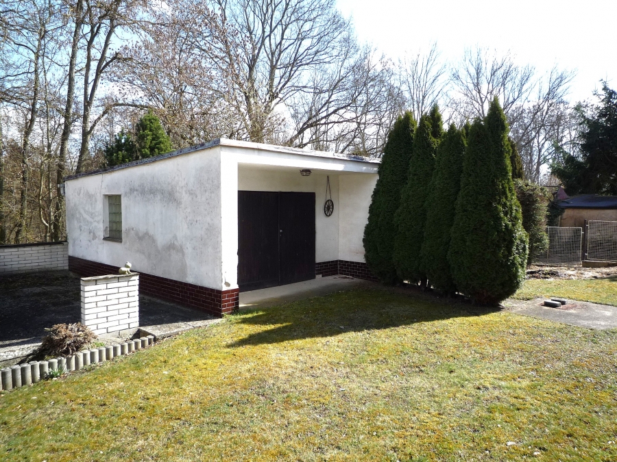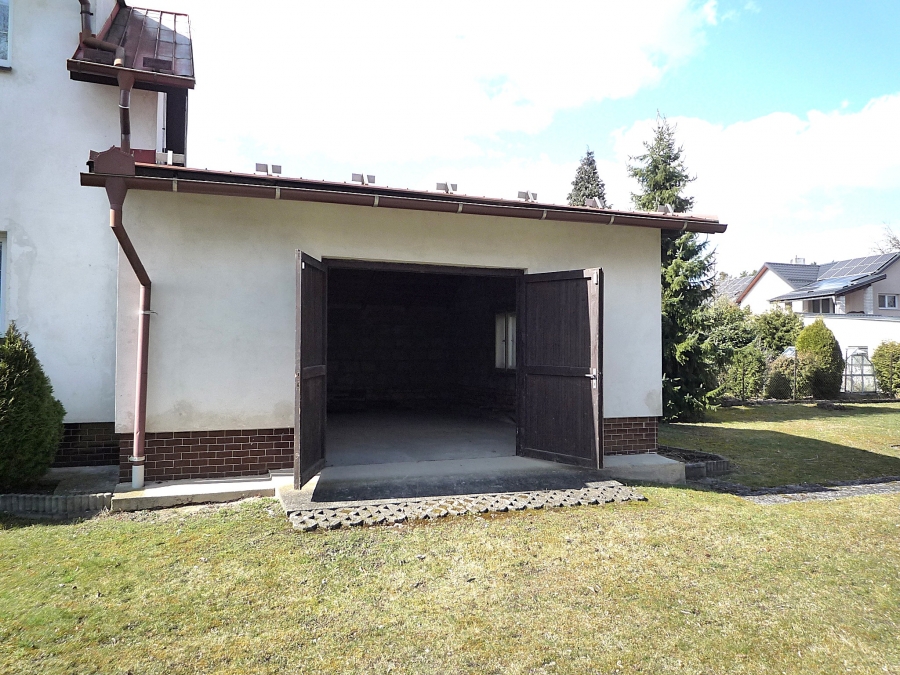 Další stavbou na pozemku je garáž s podlahovou plochou 21 m2 a otvor vrat je šířky 242 cm a výšky 205 cm.