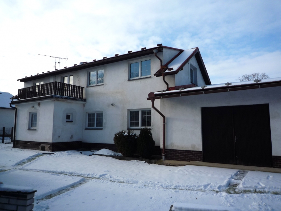 Hlavní stavba rodinného domu o zastavěné ploše103 m2 je v základu původní venkovský dům, který léty prošel procesem dostaveb a přestaveb. V aktuální podobě, v jaké dům sloužil jako trvalé obydlí mladé rodiny, poskytuje ve dvou podlažích 147 m2 obytné plochy v dispozici 4+1 (viz plánky podlaží ve fotogalerii). Rodinný dům je ve stavu, kdy může být prakticky okamžitě obýván. Pouze je nutná náhrada za vysloužilý stávající plynový kotel. V obci aktuálně probíhá výstavba splaškové kanalizace a je uzavřena smluvní dokumentace vlastníkem nemovitosti k napojení. Stávající stav je odvod domovních splaškových vod do žumpy. Dům je napojený na obecní vodovod a na plynovou přípojku. Obvodové zdivo v 1 NP je 45 cm, v 2 NP jsou štítové zdi 45 cm, zbytek 30 cm. Zdivo není opatřené tepelnou izolací. Izolace stropu a šikmin 2 NP je 10 cm Orsil. Výška stropu 1 NP 270 cm, 2 NP 235 cm. Krytina střechy je plechová (alukryt šablony). Původní kamenný sklípek pod domem o výměře 7,5 m2.